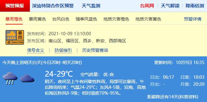 受臺風(fēng)“獅子山”影響,目前深圳市臺風(fēng)白色預(yù)警、強季風(fēng)藍色、分地區(qū)暴雨橙色預(yù)警、暴雨黃色預(yù)警、分區(qū)地質(zhì)災(zāi)害氣象風(fēng)險橙色、地質(zhì)災(zāi)害氣象風(fēng)險黃色等六大預(yù)警生效中。
