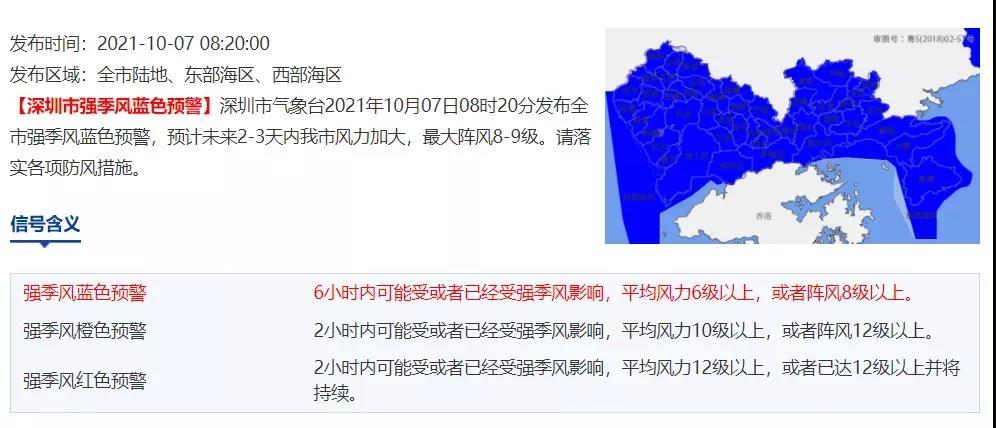 所以,深圳現(xiàn)已發(fā)布的強季風(fēng)藍色預(yù)警,表示6小時內(nèi)可能受或者已經(jīng)受強季風(fēng)影響,平均風(fēng)力6級以上,或者陣風(fēng)8級以上。