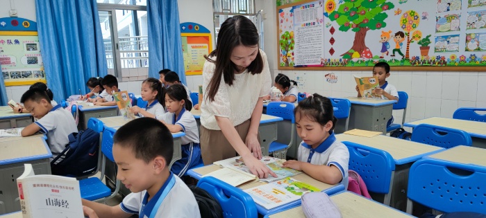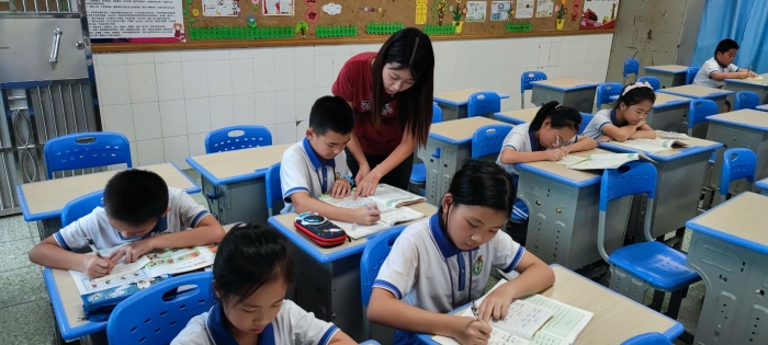 第一學(xué)時(shí)基本托管以自然班為主開展,均由擔(dān)任語文、數(shù)學(xué)、英語學(xué)科的老師負(fù)責(zé)。一、二年級以自主作業(yè)、適當(dāng)?shù)匕才澎柟叹毩?xí)為主,三至六年級以作業(yè)輔導(dǎo)、答疑解惑為主。全體教師在課后服務(wù)的時(shí)間與空間里,做到真誠服務(wù)、耐心解惑,幫助孩子們高質(zhì)量地完成課后作業(yè)。孩子們在完成作業(yè)的過程中,遇到問題可以隨時(shí)舉手提問,老師們面對面進(jìn)行輔導(dǎo)解答。遇到非學(xué)科的專業(yè)性問題,孩子們在征得老師的同意之下,可以請教班級里的“小老師”,也可以輕輕地走到其他班級,向?qū)?yīng)學(xué)科的老師請教,確保孩子們能在有疑問時(shí)及時(shí)地解決困難。在這樣的學(xué)習(xí)氛圍里,孩子們的學(xué)習(xí)欲望更強(qiáng)烈了,學(xué)習(xí)效率和質(zhì)量也更高了。