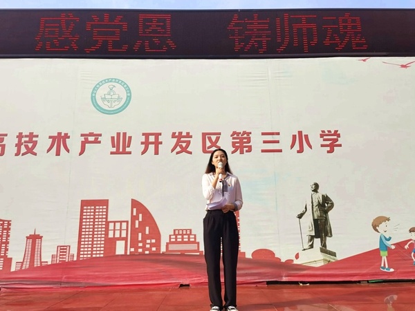 接著,三小黨支部書(shū)記劉光旗校長(zhǎng)作了熱情洋溢的講話。他高度肯定和贊揚(yáng)全體教師對(duì)開(kāi)發(fā)區(qū)三小教育教學(xué)發(fā)展的付出,表示任何人的成長(zhǎng)成才,社會(huì)的每一次進(jìn)步,都離不開(kāi)老師的辛勞和奉獻(xiàn)。他呼吁全體教職工要向時(shí)代楷模黃大年老師學(xué)習(xí),時(shí)刻牢記“為黨育人、為國(guó)育才”的使命,在今后的工作中立足各自的崗位,齊心協(xié)力,積極進(jìn)取,培養(yǎng)更多能夠擔(dān)當(dāng)民族復(fù)興大任的時(shí)代新人。