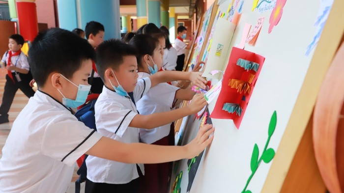 清晨,學(xué)生們帶著親手制作的節(jié)日賀卡來到學(xué)校,用心地貼在節(jié)日祝福板上,隨后,少先隊員代表向全體教師送上鮮花。一張張精美的卡片,一句句真切的話語,一束束美麗的鮮花,表達了學(xué)生對老師的感恩與祝福。