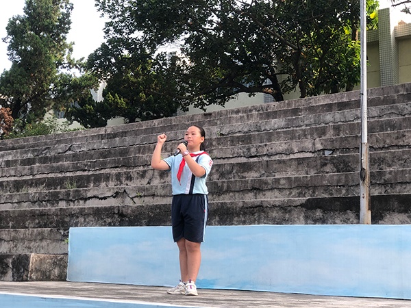 緊接著,同學們集中在國旗下,簡單而隆重的升旗儀式后,五(1)中隊熊一妍隊員作為大隊代表發(fā)表了國旗下講話。她與同學們重溫了九一八歷史事件,希望同學們勿忘國恥,從歷史中汲取教訓,努力學習,長大后建設(shè)祖國。接著,大隊輔導員伍煜獻老師進行了活動總結(jié),表揚了同學們的整體表現(xiàn),強調(diào)了要在保證安全的前提下,進一步提高安全逃生的速度。