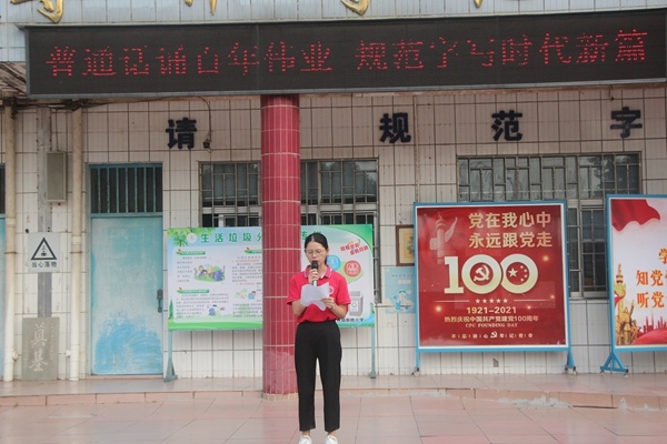 9月13日的升旗儀式上,語文科組長劉小輝老師進(jìn)行主題為“普通話誦百年偉業(yè),規(guī)范字寫時代新篇”的國旗下講話,劉老師向全校師生發(fā)起倡議,呼吁全體師生講普通話,寫規(guī)范字,做文明人,積極參與到推普周活動中來,為構(gòu)建和諧語言生活,弘揚(yáng)中華優(yōu)秀文化而努力。
